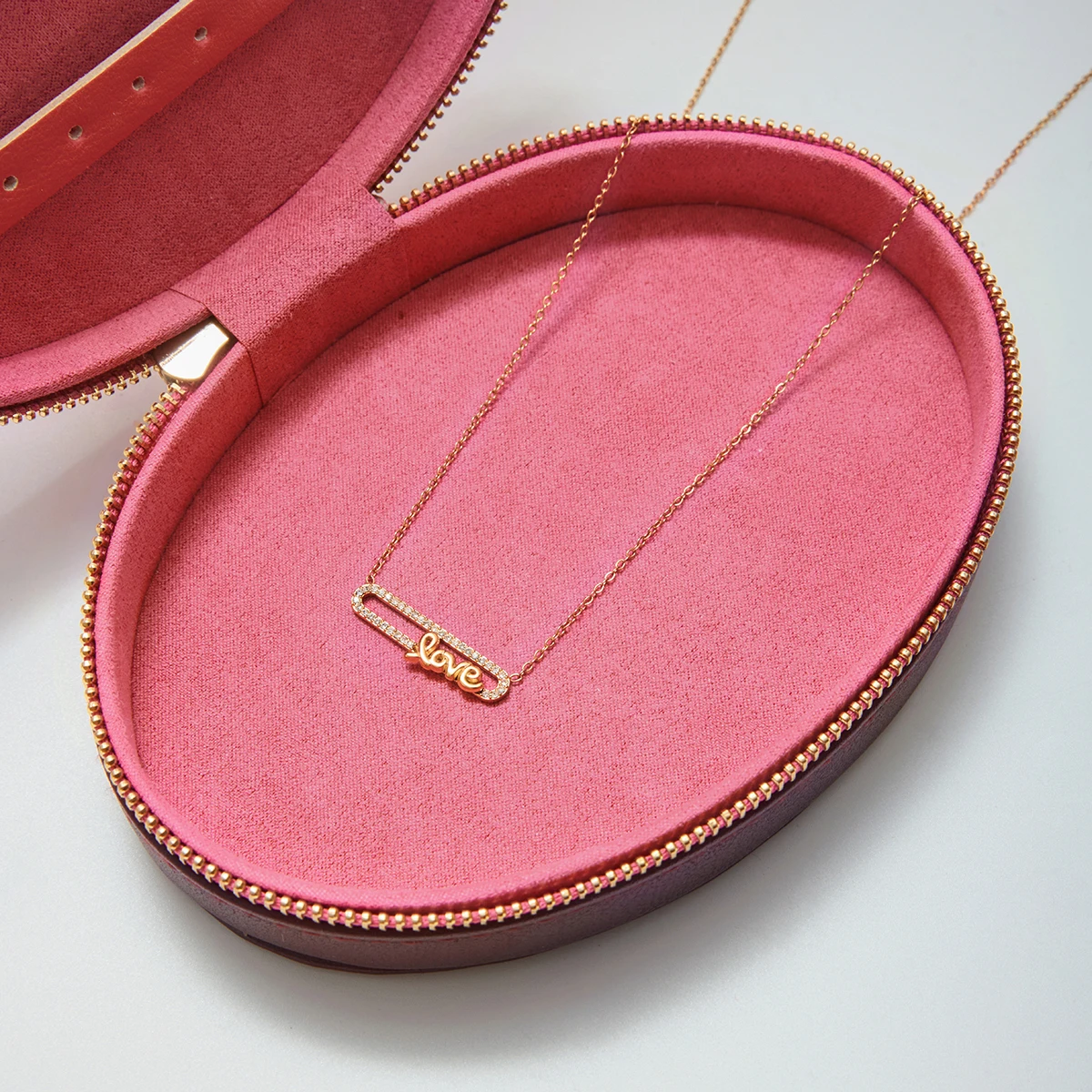 Uworld Minimalist Classic 18K Gold Color Plated Inlaid White Rhinestone LOVE Letter Necklace Waterproof Stainless Steel Jewelry